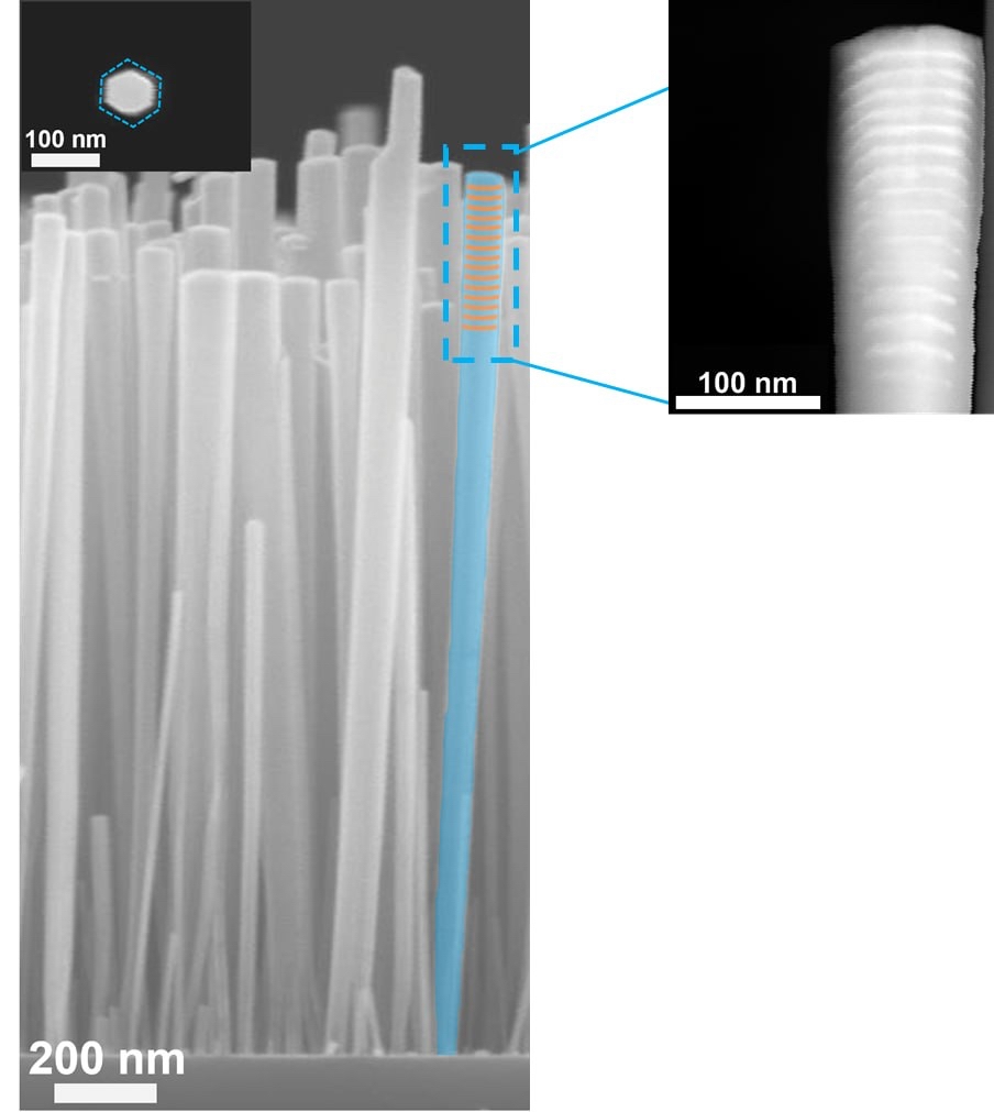 Исследователям удалось объединить преимущества метода молекулярно-пучковой эпитаксии (обеспечивающего высокую чистоту и резкость гетерограниц), преимущества нитевидных нанокристаллов перед планарными слоями, а также преимущества «квантовых ям» InGaN в качестве активной среды. Совокупность этих факторов позволила получить узкую линию лазерной генерации.